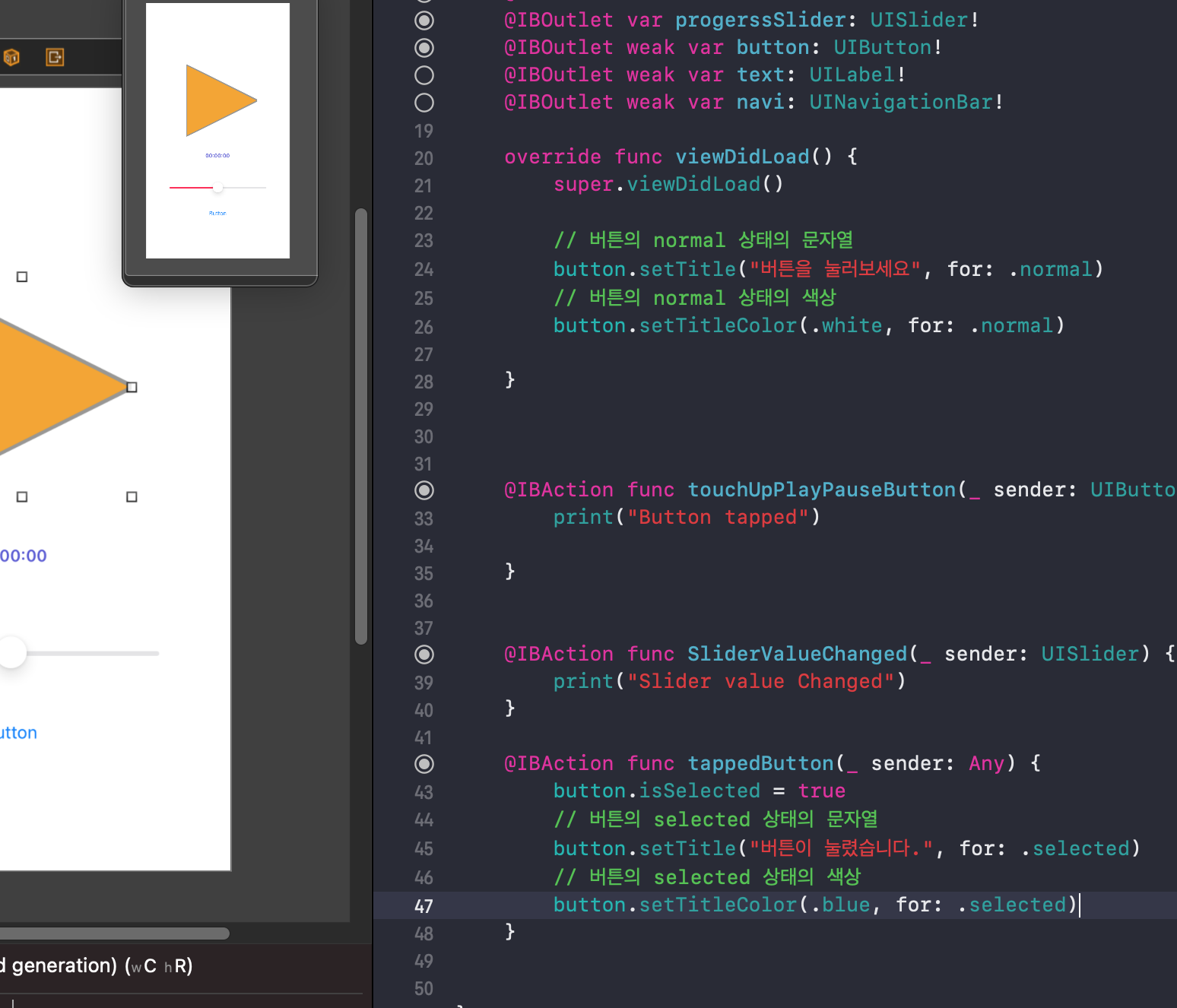2. 인터페이스 빌더에서 연결(@IBAction)